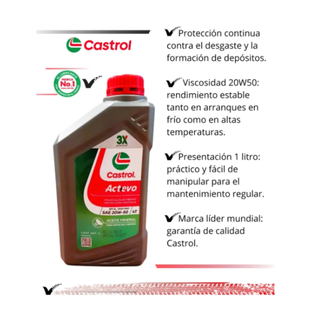 🛢️ Aceite Castrol Actevo 20W50 4T – 1 Litro
